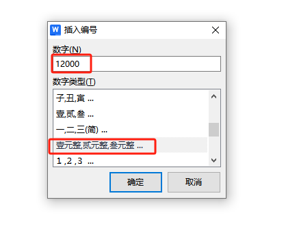 3、在“编号”对话框中,选择大写数字类型(如“壹, 贰, 叁…”),点击“确定”完成转换。