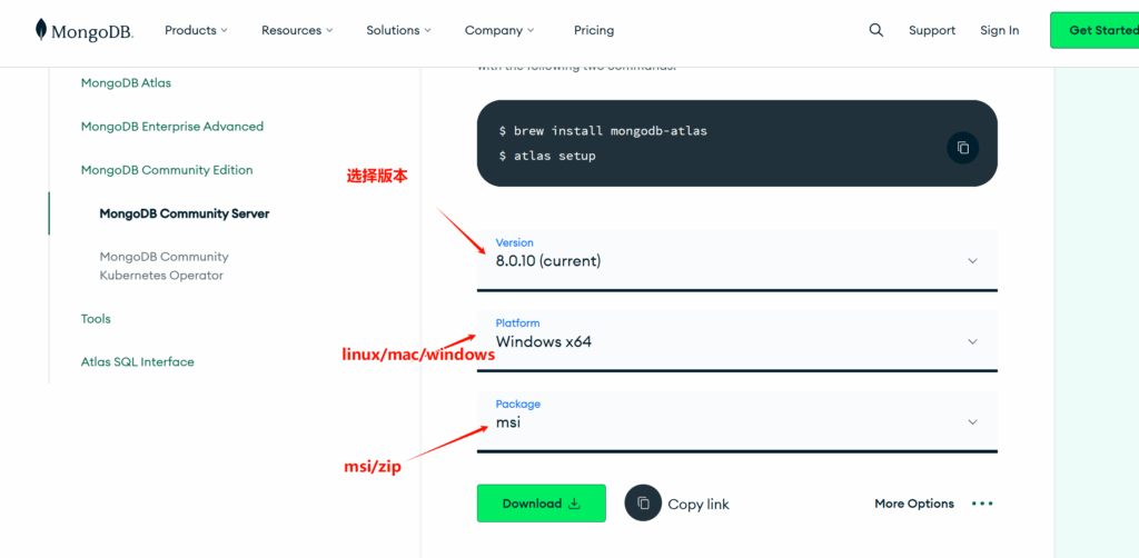 官网下载地址: Download MongoDB Community Server | MongoDB