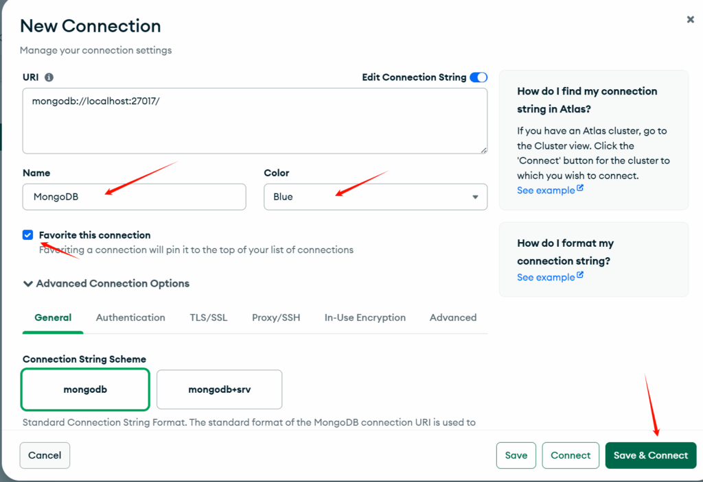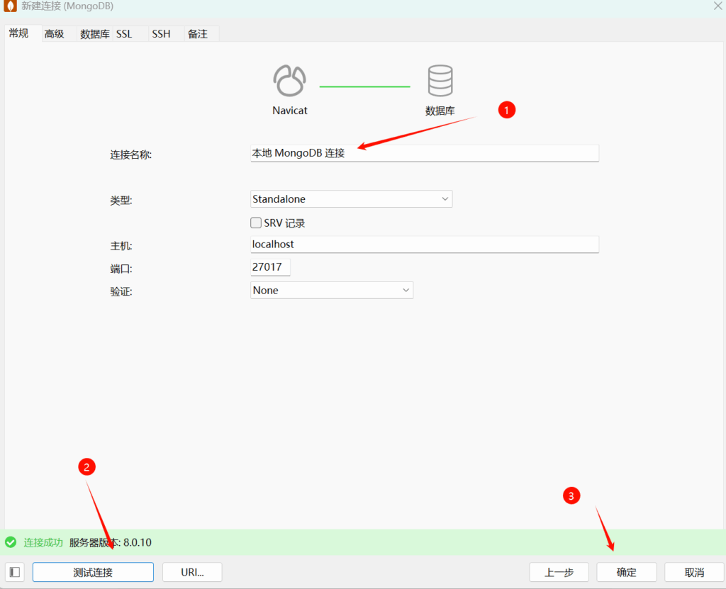 • Name:给连接起个名字(比如 “本地 MongoDB”),方便后续识别。