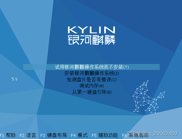 如选择“试用银河麒麟桌面操作系统”,则会进入试用界面,如图2所示:
