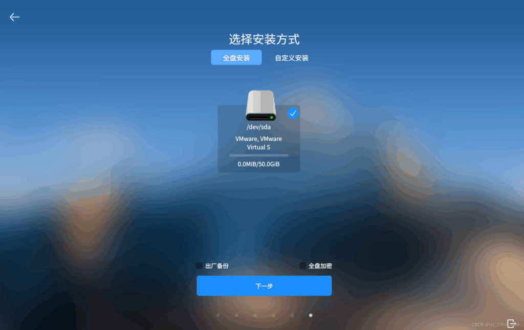 安装方式分为两种,全盘安装和自定义安装。如果不知道如何处理,这里推荐使用默认的全盘安装。后面再慢慢理解。