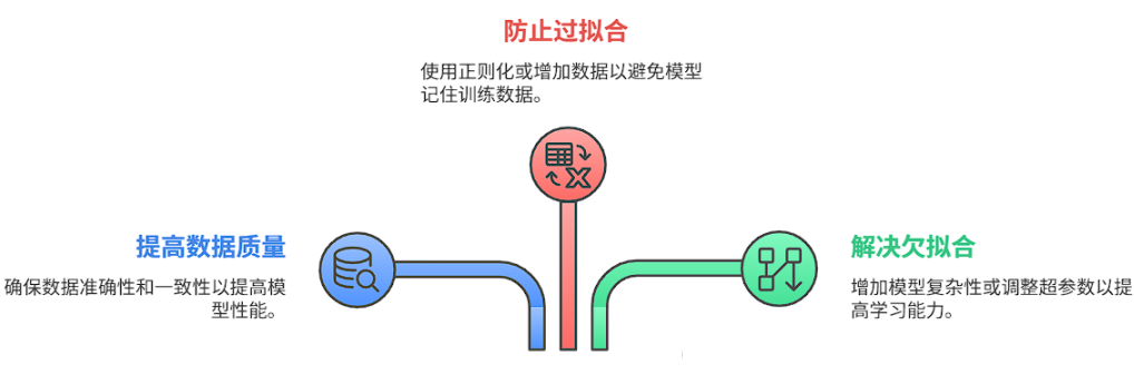 这通常是因为模型太简单(比如用单层神经网络处理复杂图像),或者训练数据太少。解决办法也简单:给模型“升级”(增加层数、参数)、换更复杂的算法,或者多喂点数据让模型“学透”。