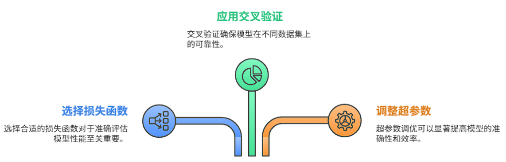 损失函数是模型的“错题本”——用来衡量预测结果和真实答案的差距,数值越小,模型表现越好。不同任务的“错题标准”不一样:分类任务(比如判断猫/狗)常用“交叉熵损失”(错分的概率越大,损失越高);回归任务(比如预测房价)常用“均方误差”(预测值和真实值的平方差,差距大时惩罚更重)。