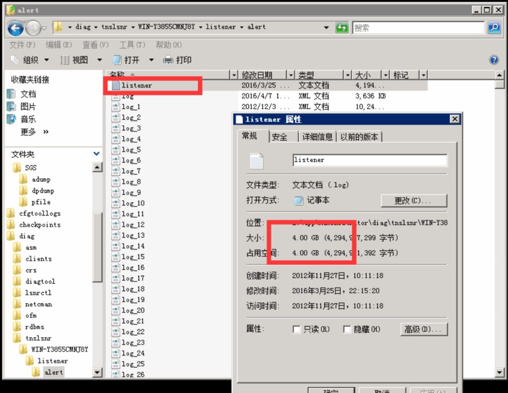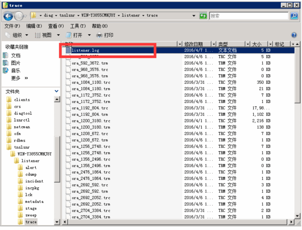 E:\app\Administrator\diag\tnslsnr\WIN-Y3855CMNJ8Y\listener\alert,如下图: