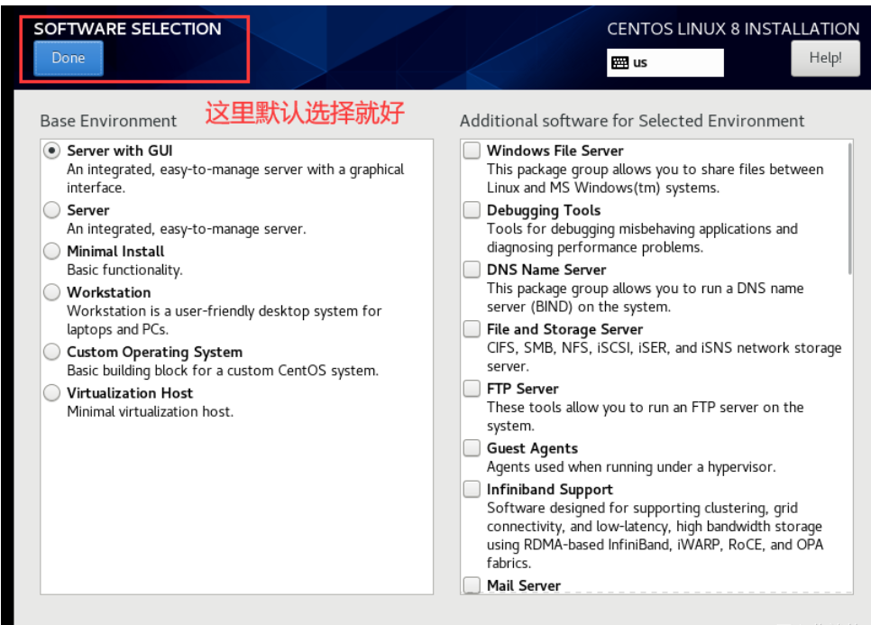 (说明,如果不想登录后有此页面,那就回到第3步,安装的时候选择最小化安装,不要选择GUI)