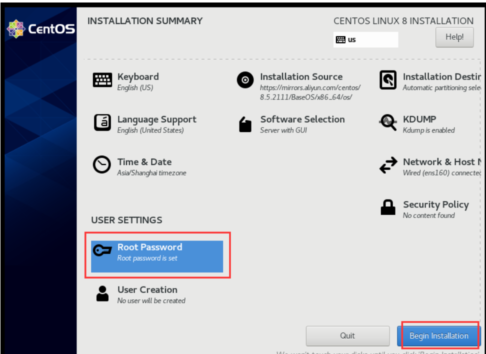 9.设置root用户密码,可以先不选择创建其它账号,使用root即可